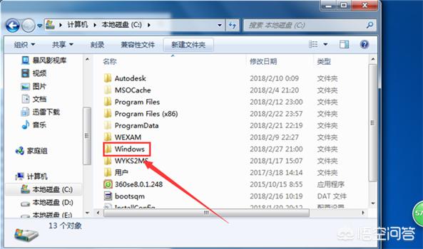 打开C盘后在其中找到Windows文件夹并打开。