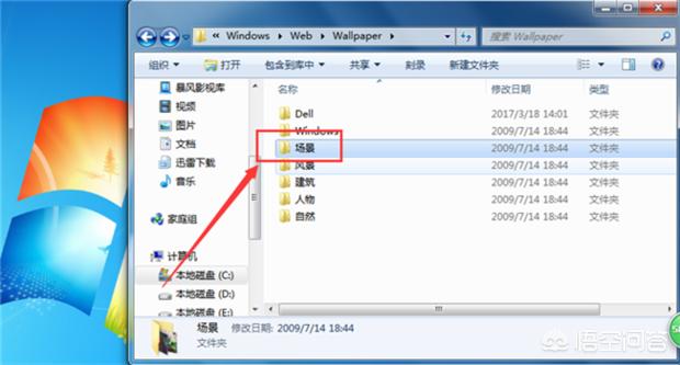如果想修改壁纸的话,回到刚才的页面,比如打开“场景”文件夹。