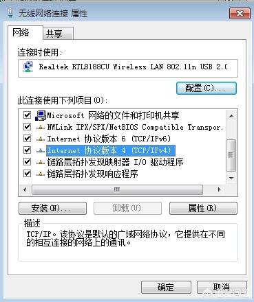 4、选择Internet协议版本4(TCP/IPv4),点属性;