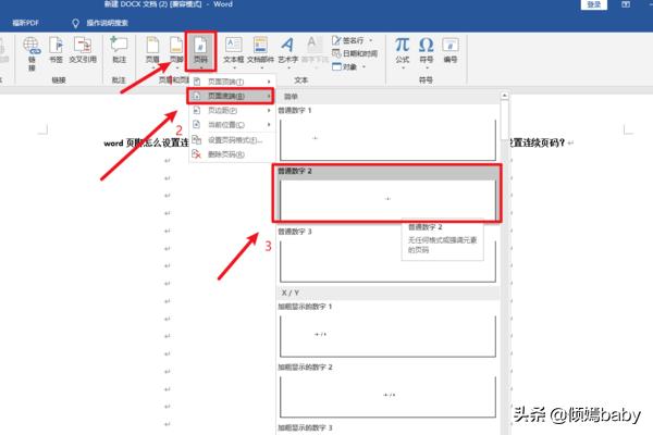 3.再次点击“页码”,选择“页面底端”,选择页面位置。