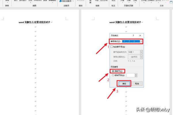 2进去页码页面,勾选 续前节,应用范围-整个文档,点击确定