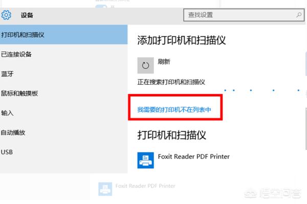 5、点击添加打印机后,等待搜索,如果没有搜索到,点击我需要的打印机不在列表中。