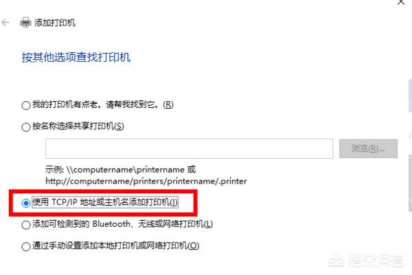 6、进入到查找打印机界面后,点击下方的使用TCP/IP地址或主机名添加打印机