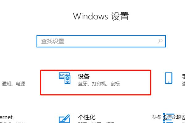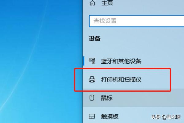 4、在设备设置界面中,找到左边导航栏的打印机和扫描仪。并点击进入。