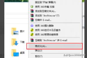 4、备份好U盘的文件后,右键U盘会出现各种选择,选择格式化。