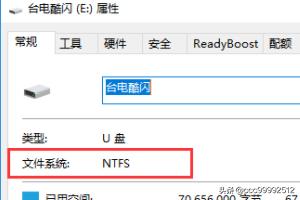 7、格式化程序完成后,点开U盘查看属性,文件类型就是NTFS的了。