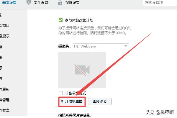 4、在打开的页面中就可以看到摄像头了,点击打开预览画面选项,就可以使用摄像头了。