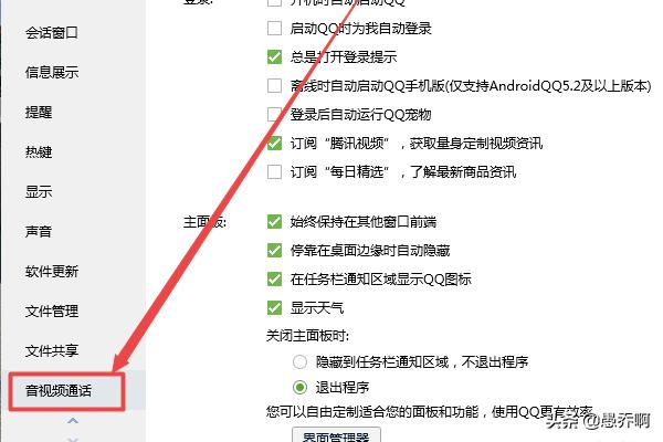 3、在打开的系统设置页面中点击左侧的下拉箭头,找到音视频通话选项,并点击它。