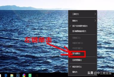 1、右键点击任务栏,从菜单中选择“显示桌面”