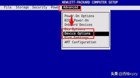 3、选择“Advanced”下的“Device Options”选项按回车键。