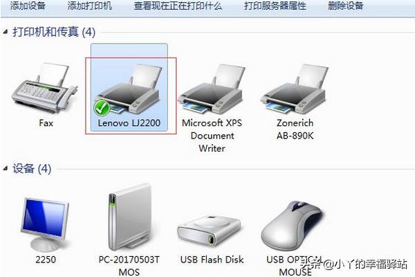 1、打对勾就是默认打印机,选中“被默认打印机”。