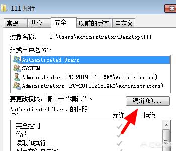 2、在界面中,切换到安全选项,点击编辑按钮,