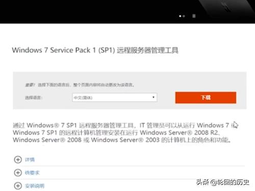 2、然后,网络搜索并找到“Win7 service pack 1”下载链接页面,单击进入。弹出窗口中找到要下载的安装包,点击“下载”按钮。