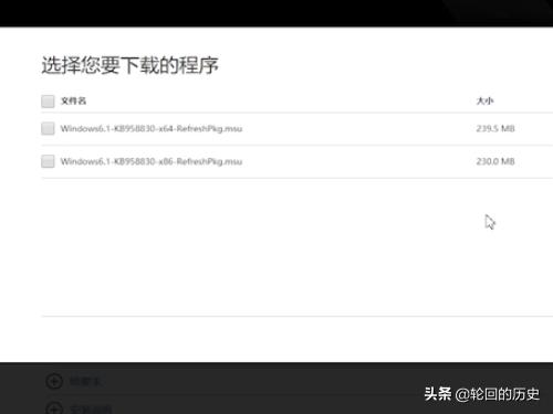 3、在“选择您要下载的程序”界面中选择一个“service pack 1”安装包。
