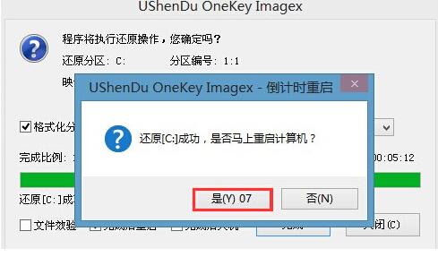 6、释放完成后所出现的提示重启窗口中可点击“是”,或者等待10秒让电脑重新启动。