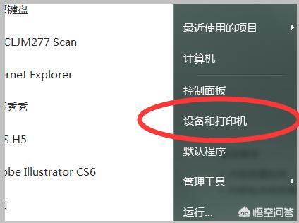 2、然后点击电脑的“开始”按钮,在打开的菜单栏中点击“设备和打印机”。
