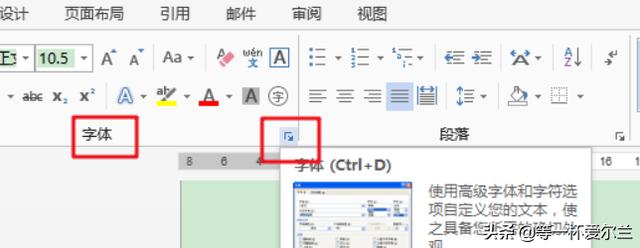 在文档工作区上方工具栏里找到字体右下角的小箭头,如下图。