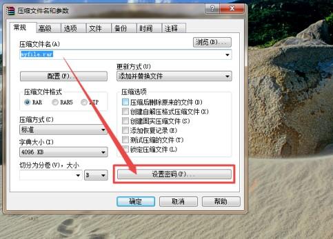 然后在打开的压缩小窗口中点击 ‘设置密码’按钮。
