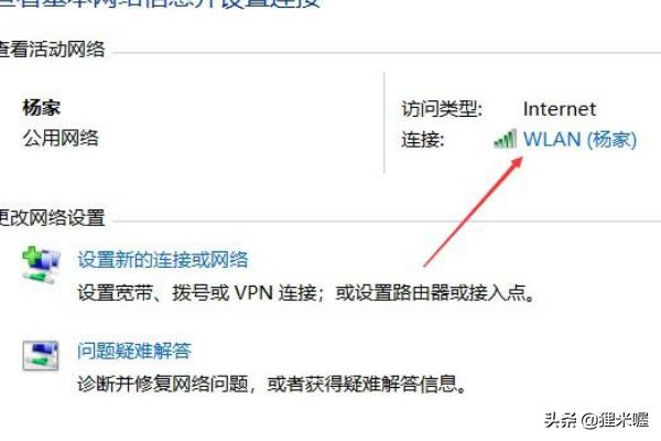 3、在弹出的网络和共享中心窗口中点击【WLAN(wifi名称)】。