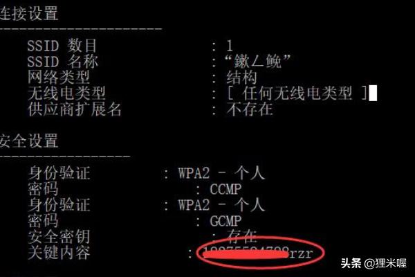 3、输入“netsh wlan show profiles WiFi名称 key=clear”(如:netsh wlan show profiles 杨家 key=clear)可查看该WiFi名称的详细信息,包括该WiFi的密码(关键内容后的就是WiFi密码)。