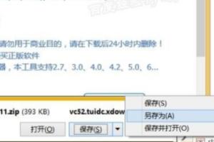 1.一般情况下,在没有第三方下载工具时点击有下载的文件时,IE最下面会出现保存的提醒,我们可以点击“保存”边上的三角形,再选择“另存为”,而不是直接点“保存”: