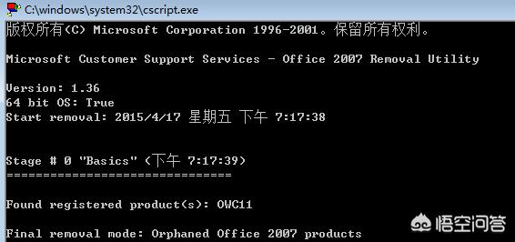 4、卸载完成后,office其实并没有完全卸载干净,在注册表中还残留着大量的office信息,如果想要安装最新版本的office,那么这些都要需要删除的,如果不删除之前的office内容,那么最新版本的office就会和这些内容产生冲突,然后出现错误。