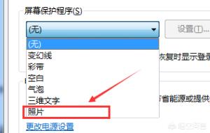 2、然后再点击右下角的【屏幕保护程序】,点击屏幕保护程序下拉按钮,选择【照片】。